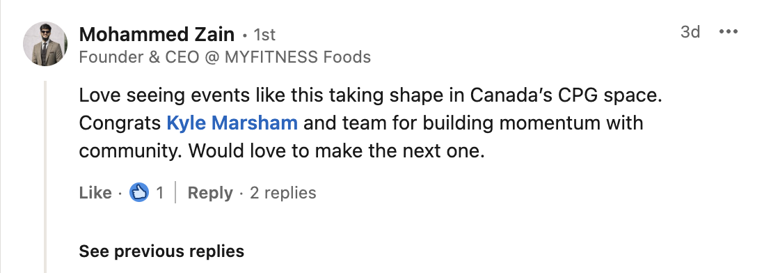 “Yesterday’s CPG Dept. event was a great reminder that building a brand really is a sport 💪