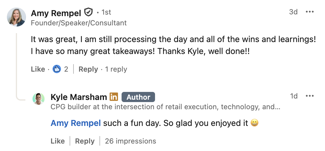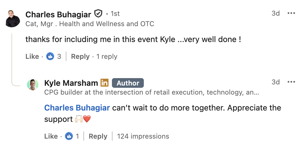 “I had the pleasure of attending The CPG Dept. Sport of Building Brands event put on by Kyle Marsham and his team. I knew the event was going to be lit as soon as I saw Trevor because I had no idea he was going to be there!